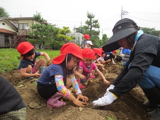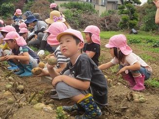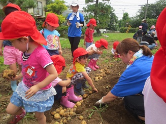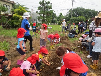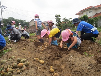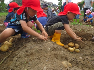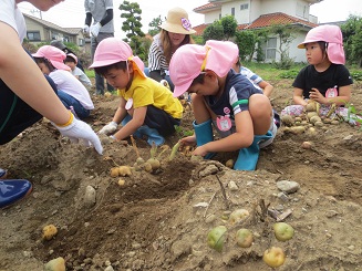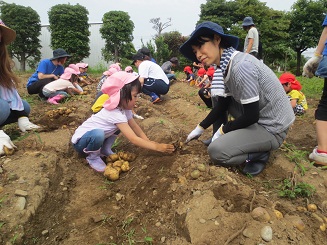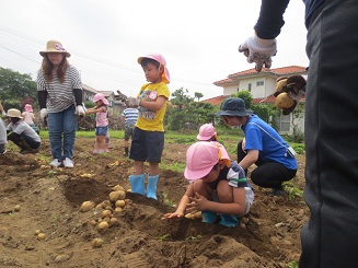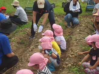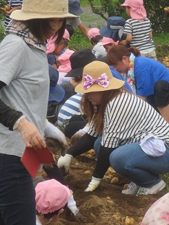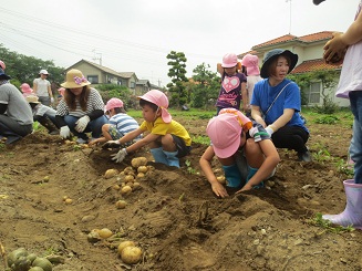 今年も歯科園医さんの畑でジャガイモ堀体験をしました。