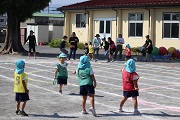 秋空のもと、運動会の予行練習が行われました。子どもたちのためよりも、運動会当日、役員として用具等の準備をしていただく、PTAの役員さんの確認の意味合いが強い運動会予行です。役員の保護者の皆さま、本番の確認ありがとうございました。園児たちも運動会本番のつもりでしっかり取り組み、問題点も確かめられる予行練習になりました。また、親子大玉送りリレーでは、初めて保護者、大人の人とペアーを組んで練習することができました。台風の進路も大丈夫そうで、土曜日、運動会をがんばりましょう。