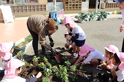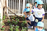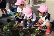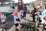 深谷市の花はなプラン事業の一環として、園庭の花壇の花を植え替えました。植え替えには、PTAの環境部の役員の皆さんと前年度の役員の皆さんが手伝ってくれました。園庭の花壇もパンジーなどの冬の花に植えけられました。