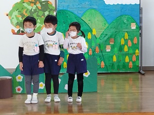 「まん延防止等重点措置」の延長を受け、例年実施しております保育参観の持ち方の変更にご理解いただき感謝いたします。22日に分散型保育参観の計画表を配布しました。第一希望を優先に計画表を作成しましたが、思い通りにならなかった保護者の皆様のご理解に感謝いたします。参加人数を踏まえ三密を考え計画表を作成したことにご理解下さい。参加に際しましては、配布しました健康確認票の提出をお願いいたします。