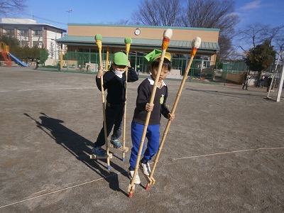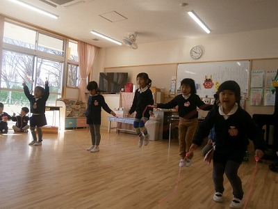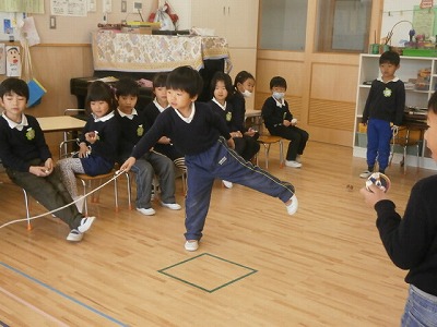 うさぎ組、保育参観の練習風景と、こままわしの様子です。