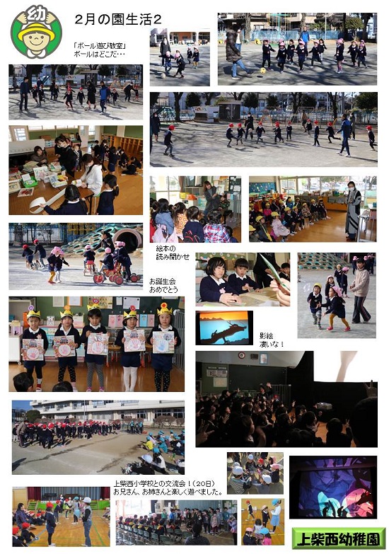 春休みを利用して3学期の園生活を写真で紹介しています。今回はその5回目(2月)です。(保育参加・誕生会・小学校との交流会等)