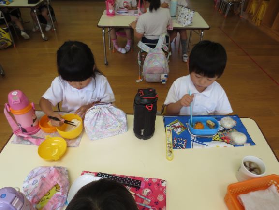 マスクを外して、みんなおしゃべりしないで美味しく食べていました。