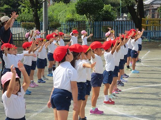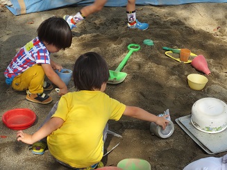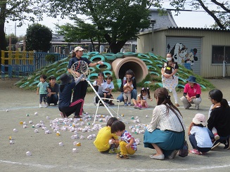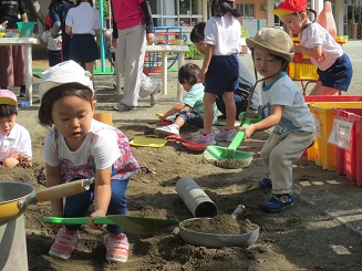 お砂場遊び、はとぽっぽ体操、玉入れなどで楽しく遊びました。