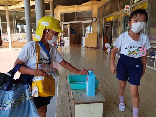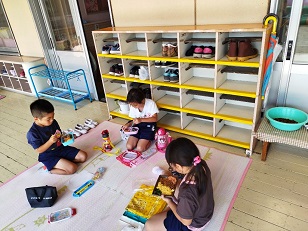 「まん延防止等重点措置」の延長を受け、例年実施しております保育参観の持ち方の変更にご理解いただき感謝いたします。22日に分散型保育参観の計画表を配布しました。第一希望を優先に計画表を作成しましたが、思い通りにならなかった保護者の皆様のご理解に感謝いたします。参加人数を踏まえ三密を考え計画表を作成したことにご理解下さい。参加に際しましては、配布しました健康確認票の提出をお願いいたします。