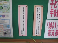 みんなで元気なあいさつをしていこう。廊下にみんなが保護者の方と一緒に作ってくれたあいさつ標語を掲示しました。やっていきましょう。