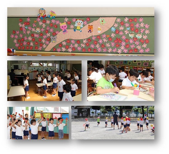 ※写真は年長児の作品(秋桜)と今日の子どもたちの様子です
