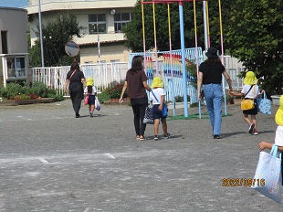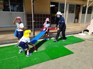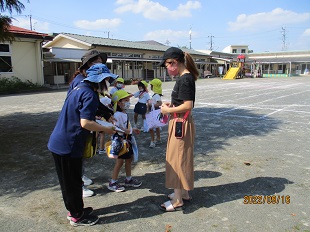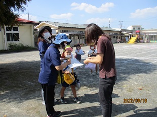 暑い中、徒歩で来園し引き渡し訓練にご協力していただき