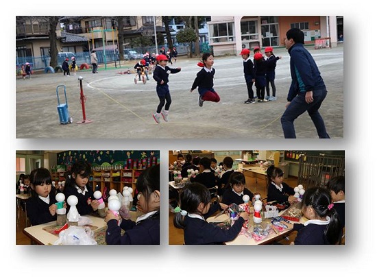 今日は曇っていてすっきりしない天気でしたが、子どもたちは元気に外遊びもしました。もうじきひな祭りがあるので、子どもたちはお雛様づくりを始めました。年中児は平面的なお雛様・年長児は立体的はお雛様に挑戦し手います。