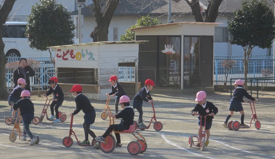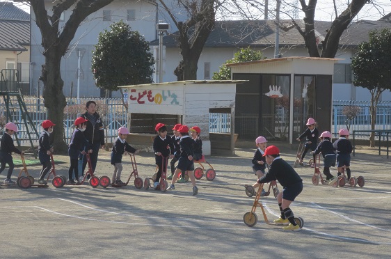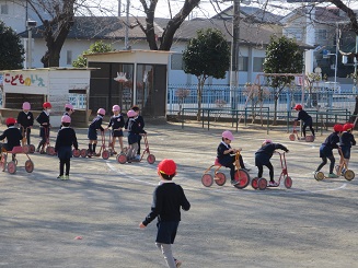 校庭のスクーターコースには、園の全スクーターが集結し大賑わいで動いていました。こんなの初めて・・・。