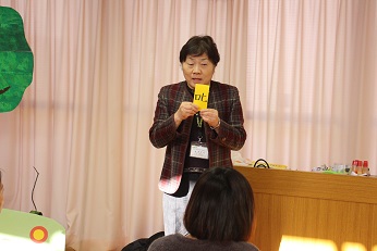 12月20日(木)は今年度最後の子育てひろばでした。風もなく、穏やかな小春日和で園庭でも楽しそうに遊んでいました。お部屋では、お母さんといっしょにリースづくりを楽しんでいただきました。深谷市教育委員会 関口良子専門員さんからは「匙」「叱」というお話でした。目標を決めて、一歩進んだら「○○をがんばってできるようになったね」と具体的にほめて、認めてあげる。間違っていることはきちんと教え、一方的に叱責するのではなくきちんと教えてあげることが大切だというお話を絵本と一緒にわかりやすくお話しいただきました。最後は、がんばりメダルが参加した子供たちに贈られました。きりん組が「あわてんぼうのサンタクロース」の歌をプレゼントして、今年度の子育てひろばは終わりました。来年入園してくる園児たちもいます。待っていますよ。