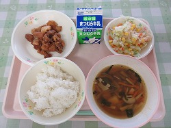 ソイ丼 かきたま汁 バリバリサラダ 牛乳