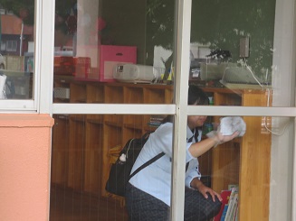 この後1班の保護者の方にワックス掛け、トイレ、教室、ベランダ、階段、流し等の清掃をしていただきました。