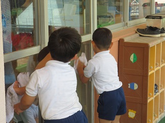 園では毎日、昼食後、当番毎に簡単な清掃をしています。