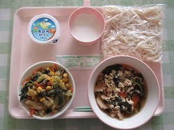 ソイ丼 かきたま汁 バリバリサラダ 牛乳