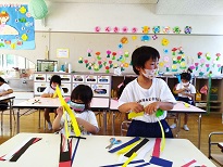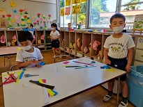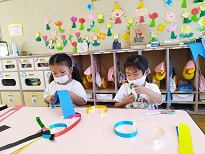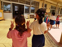 「まん延防止等重点措置」の延長を受け、例年実施しております保育参観の持ち方の変更にご理解いただき感謝いたします。22日に分散型保育参観の計画表を配布しました。第一希望を優先に計画表を作成しましたが、思い通りにならなかった保護者の皆様のご理解に感謝いたします。参加人数を踏まえ三密を考え計画表を作成したことにご理解下さい。参加に際しましては、配布しました健康確認票の提出をお願いいたします。