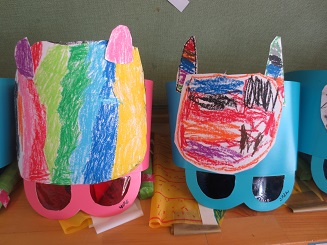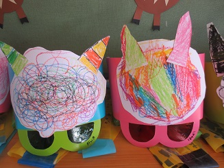 きりん組さんたちの作った鬼の面は、