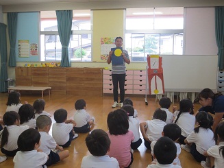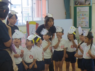どんな演技なのか楽しみにしていてください。園児もとても楽しそうな表情です。