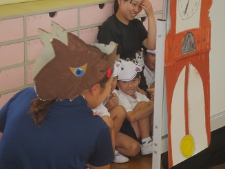 劇は、オオカミと11人のヤギのお話です。誕生日のみんなでヤギ役を務めました。住吉オオカミに食べられそうで怖かったようです。可愛い