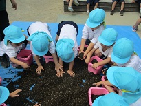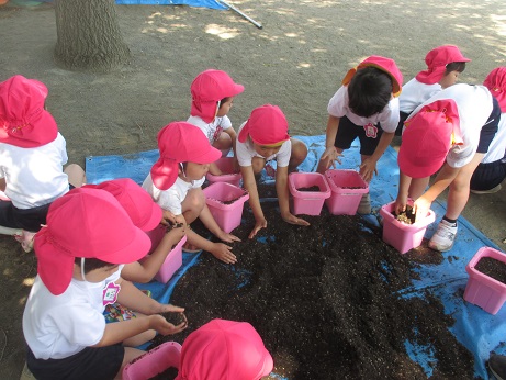 5月に入り、畑の苗植えから始まって、どのクラスも花の種をまきました。