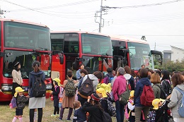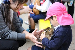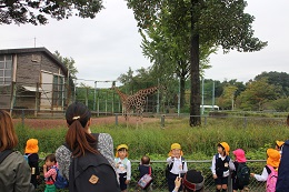 10月6日(金)、親子遠足に東松山こども動物自然公園へ行ってきました。全員参加というわけにはいきませんでしたが、3・4歳の園児たちにとっては初めての親子バス旅行です。「大型バスにのってます」という歌をガイドさんといっしょに歌いながら、片道1時間のバス旅を楽しみました。集合写真をとって、動物を見て回りました。保護者の方といっしょということで、園児たちは安心して、長い距離もリュックサックを背負って歩きました。途中でドングリを拾ったりしながら、自然と動物との出会いを楽しんでいました。この後、動物づくりやお絵かきなど、今日の体験を保育にいかしていきます。まだまだ、思い出づくりは続きます。