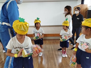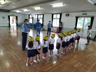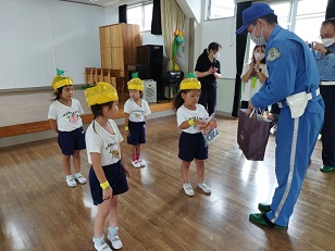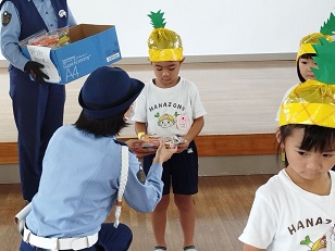 お褒めの言葉をいただき、交通安全のお話も上手に聞けました。