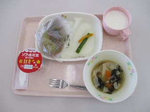 ソイ丼 かきたま汁 バリバリサラダ 牛乳