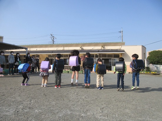 「まん延防止等重点措置」の延長を受け、例年実施しております保育参観の持ち方の変更にご理解いただき感謝いたします。22日に分散型保育参観の計画表を配布しました。第一希望を優先に計画表を作成しましたが、思い通りにならなかった保護者の皆様のご理解に感謝いたします。参加人数を踏まえ三密を考え計画表を作成したことにご理解下さい。参加に際しましては、配布しました健康確認票の提出をお願いいたします。