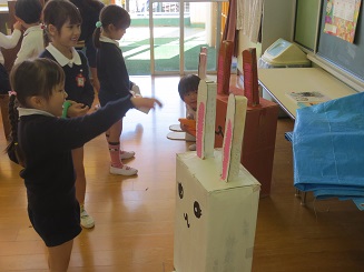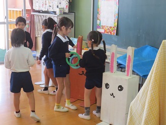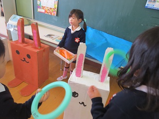 ウサギの耳にて輪投げをして楽しんでいます。