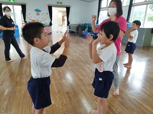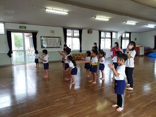 「まん延防止等重点措置」の延長を受け、例年実施しております保育参観の持ち方の変更にご理解いただき感謝いたします。22日に分散型保育参観の計画表を配布しました。第一希望を優先に計画表を作成しましたが、思い通りにならなかった保護者の皆様のご理解に感謝いたします。参加人数を踏まえ三密を考え計画表を作成したことにご理解下さい。参加に際しましては、配布しました健康確認票の提出をお願いいたします。