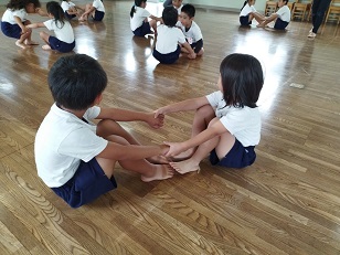 つま先歩きの時は、手の指にも力が入り曲げている子がいました。