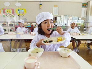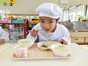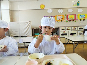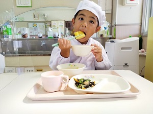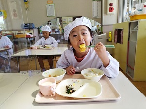練習を頑張った後の給食は美味しくて、たくさん食べられました。