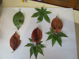 形を写し取り、葉っぱにニコニコ目を入れました。