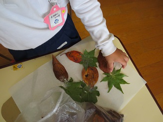その葉を利用して今日は、さらに秋とお友達になりました。