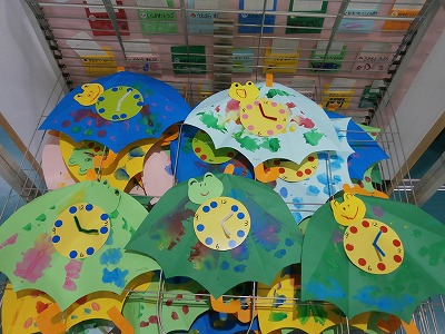 室内では時計作りの仕上げです。うさぎ組は雨をイメージした時計が出来上がりました。