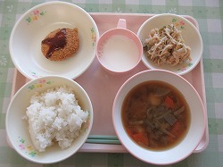 ソイ丼 かきたま汁 バリバリサラダ 牛乳