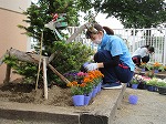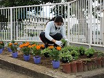 植えづらい奥の方の花壇に花を植えていました