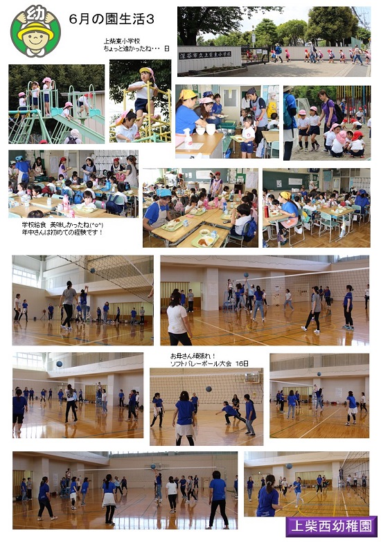 夏休みも半分を過ぎてしまいました。まだまだ休みは続きますので、それぞれ楽しい夏休みを過ごしています。この夏休みを利用して、一学期の活動を写真にまとめま紹介しています。今日はその11回目です。(東小訪問・PTAバレー大会等)