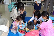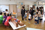 保育参観では、4歳児ぱんだ組がゲーム遊びの様子を見ていただき、5歳児ばら組は、お店屋さんごっこを一緒に楽しんでいただきました。お父さん、お母さんに見てもらうことや一緒に遊んでもらうことで園児たちは、いつも以上に頑張っていました。保育参観後、親の学習会として深谷市教育研究所の関口専門員さんから幼児期のしつけという講演を聞きました。幼児のどんな小さなことも、まず、認め誉めることから子育ては始まるというお話しを聞きました。