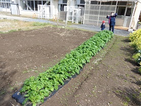 『じゃがいも』元気に生長しています!! 2月下旬に4歳児(現在の5歳児)と植えた「じゃがいもの種イモ」