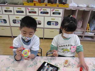 クリスマス会のサンタさんからのプレゼントにコマがありましたね。