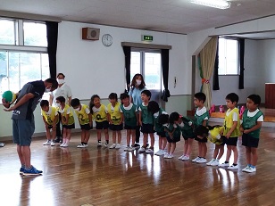「まん延防止等重点措置」の延長を受け、例年実施しております保育参観の持ち方の変更にご理解いただき感謝いたします。22日に分散型保育参観の計画表を配布しました。第一希望を優先に計画表を作成しましたが、思い通りにならなかった保護者の皆様のご理解に感謝いたします。参加人数を踏まえ三密を考え計画表を作成したことにご理解下さい。参加に際しましては、配布しました健康確認票の提出をお願いいたします。