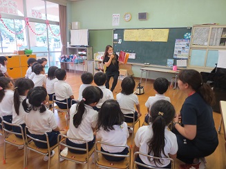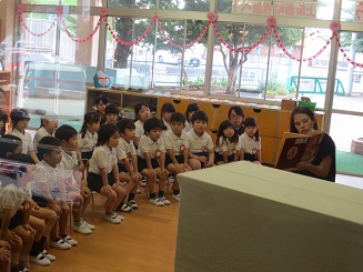 本の世界に集中、今年度初めての読み聞かせでした。みんな聴き入っています。
