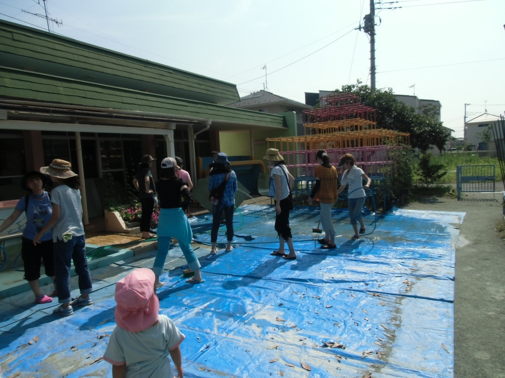 〇年中組の保護者の方に、プールの解体と