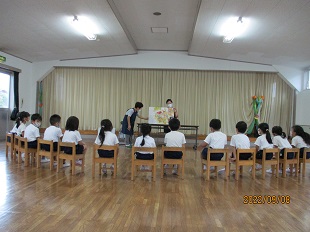 お祝いの出し物は、大型絵本「なんにもせんにん」です。