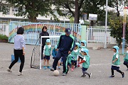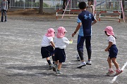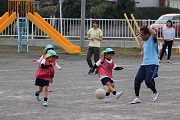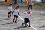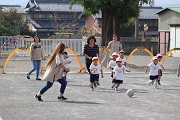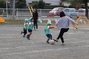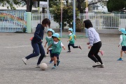 鈴木コーチによるサッカー教室が開催されました。鈴木コーチには、月に一回程度の割合でご指導を受けています。また、今日から4歳児ぱんだ組が初めてのサッカー教室を体験します。しかし、4歳児もみんなもしっかりボールを追いかけていました。さらに4歳児ぱんだ組、5歳児ばら組ともたくさんのお母さんたちがお手伝いにきてくれました。そして、園児たちに母の強さを見せつけることができました。