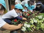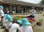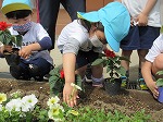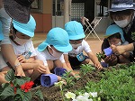 苗のお洋服をぬがせて、苗を優しくもって植えました