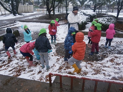 明日の朝は、路面が凍結する恐れがあります。気をつけて登園してください。