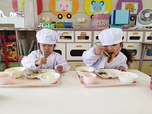 「まん延防止等重点措置」の延長を受け、例年実施しております保育参観の持ち方の変更にご理解いただき感謝いたします。22日に分散型保育参観の計画表を配布しました。第一希望を優先に計画表を作成しましたが、思い通りにならなかった保護者の皆様のご理解に感謝いたします。参加人数を踏まえ三密を考え計画表を作成したことにご理解下さい。参加に際しましては、配布しました健康確認票の提出をお願いいたします。