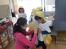 元気に登園し、自分でつくを下駄箱に入れ、教室に入ります。最初に先生に新しい名札をつけてもらいました。